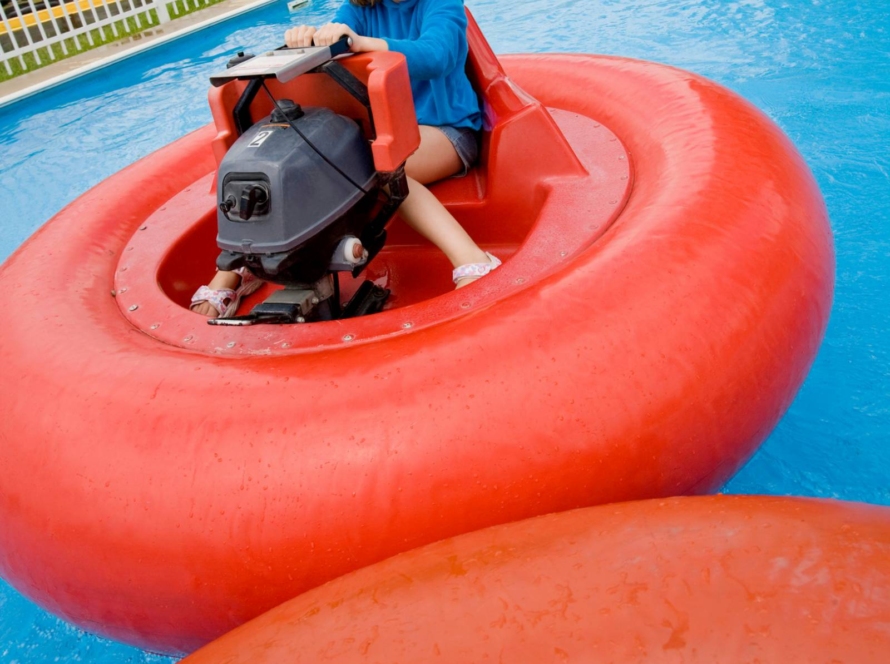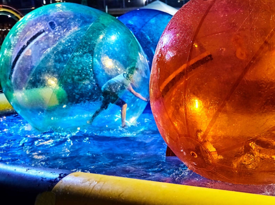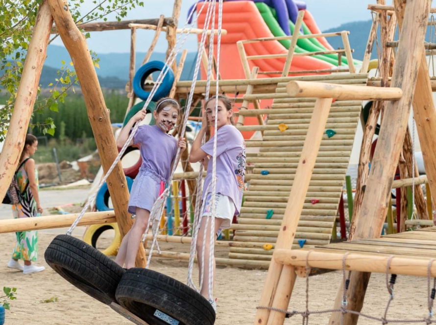Шарени надуваеми водни пързалки и басейн с диаметър 16 метра и височина 8 метра, в които децата могат да играят и разхлаждат в най-горещите летни дни.